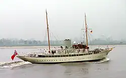 The yacht was then towed to Devonport, Plymouth and then to Clarence Dock, Liverpool for restoration.[24][25][26] The first phase of her restoration was delayed when her restorer, Cammell Laird, went into receivership in 2001.[1]