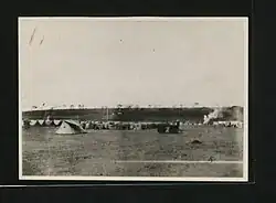 In 1898, Arthur Church was first and foremost commissioned to design the first town layout for the railway depot. It constituted two streets – Victoria Street and Station Street, ten avenues, staff quarters and an Indian commercial area.[17] The railway arrived at Nairobi on 30 May 1899, and soon Nairobi replaced Machakos as the headquarters of the provincial administration for the Ukamba province.[20][21] On the arrival of the railway, Whitehouse remarked that "Nairobi itself will in the course of the next two years become a large and flourishing place and already there are many applications for sites for hotels, shops and houses."[17] The town's early years were however beset with problems of malaria leading to at least one attempt to have the town moved.[22] In the early 1900s, Bazaar Street (now Biashara Street) was completely rebuilt after an outbreak of plague and the burning of the original town.[23]