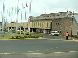 A year prior in 1972, the World Bank approved funds for further expansion of the then Nairobi Airport (now Jomo Kenyatta International Airport), including a new international and domestic passenger terminal building, the airport's first dedicated cargo and freight terminal, new taxiways, associated aprons, internal roads, car parks, police and fire stations, a State Pavilion, airfield and roadway lighting, fire hydrant system, water, electrical, telecommunications and sewage systems, a dual carriageway passenger access road, security, drainage and the building of the main access road to the airport (Airport South Road). The total cost of the project was more than US$29 million (US$111.8 million in 2013 dollars).[35] On 14 March 1978, construction of the terminal building was completed on the other side of the airport's single runway and opened by President Jomo Kenyatta less than five months before his death. The airport was renamed Jomo Kenyatta International Airport in memory of its first president.