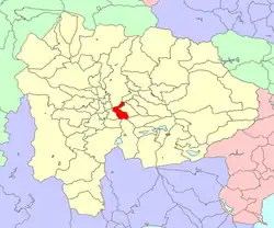 Located at the southeastern edge of the 甲府盆地 (甲府盆地), Nakamichi is the southern gateway to Kōfu. Long and narrow in shape, the town is traversed from north to south by National Route 358. The northern part is a floodplain on the left bank of the Fuefuki-gawa (笛吹川). The Takido-gawa (滝戸川), which flows into the Fuefuki, runs through the center of the town. To the south, the Sone Hills extend from the 御坂山地 (御坂山地), featuring small, rounded hills in the foreground. The southern part is part of the Misaka Mountains[2] · .[3] The municipality covers an area of 21.02 km2 (8.12 sq mi).[3]
