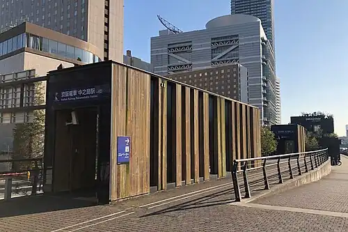 Nakanoshima Station (中之島駅) is a railway station on the Keihan Nakanoshima Line in Kita-ku, Osaka, Japan. It opened on October 19, 2008 (the day of the opening of the Nakanoshima Line). The station is the terminal of the Nakanoshima Line.