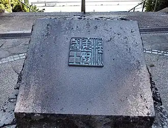 According to the Book of the Later Han, in 57 CE, Emperor Guangwu of Han granted Nakoku an imperial seal, patterned after the Chinese jade seals, but made of gold: the king of Na gold seal.[2] In return, that same year, Na sent envoys to the Chinese capital, offering tribute and formal New Year's greetings. This seal was discovered over 1500 years later, by an Edo period farmer on Shikanoshima Island, thus helping to verify the existence of Nakoku, which was otherwise known only from the ancient chronicles. Engraved upon it are the Chinese characters 漢委奴國王 (Kan no Wa no Na-no-Koku-ō, "King of the Na state of the Wa (vassal) of Han".[2]