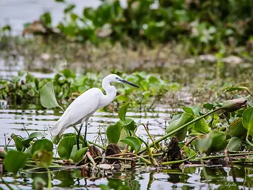 Residents include the great cormorant, little cormorant, great egret, intermediate egret, little egret, white-breasted kingfisher (white-throated kingfisher), grey heron, Eurasian coot (common coot), Indian pond heron, Eurasian moorhen (common moorhen), and grey-headed swamphen (purple moorhen). The substantial marsh and permanent water weed on the south-west edge of the lake provide perfect habitat for the moorhens and swamphens which prefer well-vegetated lakes. A few river terns, a pair of black-winged stilts, and a few red-wattled lapwings have also been spotted in the lake.