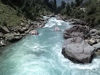 Surfraw Nallah is a big Nallah which joins the Sind river at Surfraw (Soraf raw). This Nallah is also known for its beauty and fish.[4] The Sind river is navigable from Ganderbal town. It joins the Jhelum River at Shadipora, 17 kilometres northwest of Srinagar.[5] The river also passes through the famous alpine hill station Sonamarg where river rafting[6] tournaments are organised annually by the Tourism Department of Jammu and Kashmir.[7] The Sind River is also the only river in Jammu and Kashmir on which three hydroelectric power plants are functional. The waters of the river are used for irrigation by way of different canals[8] and for domestic use.