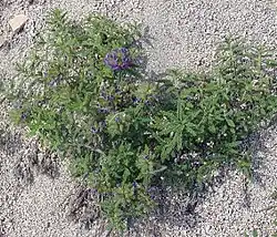 The inflorescence is a somewhat spherical head of flowers with densely hairy sepals. Each funnel-shaped flower is about 1.5 centimeters long and a centimeter wide at the face. The flowers are pink, light to deep purple, or pale blue in color.