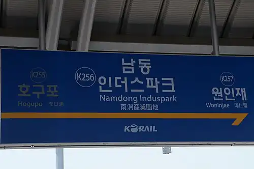 Namdong Induspark Station is a subway station on the Korail-operated Suin–Bundang Line in Namdong-gu, Incheon, which opened on June 30, 2012.