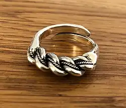In the 20th century, there was an explosion of interest in the Namejs ring in Baltics, both as jewelry and as an icon of Latvian identity.[7] It is mostly worn by men, but in modern times there are also women who wear it.[3] The material of the ring is mostly silver, but it can also be made out of gold or bronze.[4] The classic Namejs ring consists of three main bands woven around each other, but in recent years, more intricate ones have many embellishments, such as smaller twists of silver woven in with the larger bands.[1]