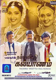 Namma Veetu Kalyanam (transl. Our Family Marriage) is a 2002 Indian Tamil-language comedy drama film written and directed by V. Sekhar. The film stars Murali in the main lead role alongside Vadivelu and Vivek. Meena, Vindhya, Rajeev, Livingston and Manorama play supporting roles. The film was released on 20 September 2002 to positive reviews from critics and commercial success.