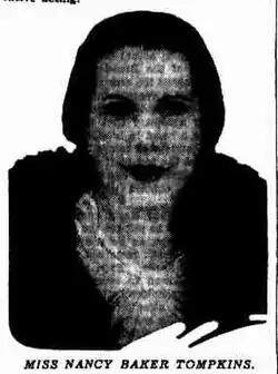 Nancy Baker Tompkins was an American working in advertising. Tompkins was a sales representative for large paper manufacturing companies to the distributors of paper products.