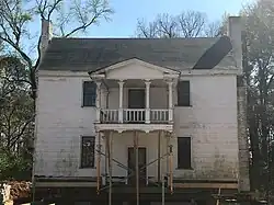 The Nancy Jones House was built on a 2,000-acre (810 ha) plantation on Chapel Hill Road in 1803 by Nathaniel Jones, known as Nathaniel Jones of Crabtree to differentiate him from Nathaniel Jones of White Plains who lived nearby.[2][4] Jones' son Henry inherited the house in 1809.[5] Henry married Nancy Ann Jones, daughter of Nathaniel Jones of White Plains, in 1813.[4] Henry and Nancy started a stagecoach stop and a tavern out of the home which became a landmark on the route between the capital city Raleigh and Chapel Hill, home to the University of North Carolina.[4][6] Maps of the era refer to Jones Ordinary.[4]