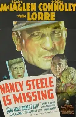 Nancy Steele Is Missing! is a 1937 American drama film directed by George Marshall and Otto Preminger and starring Victor McLaglen, Walter Connolly and Peter Lorre.[1] It was produced and distributed by Twentieth Century Fox. The film's sets were designed by the British art director Hans Peters. It has been described as a precursor to film noir.[2]