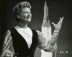 Miss Nancy’s Store was syndicated from WFSU-TV and was one of the earliest children's television shows, a precursor to Mister Rogers' Neighborhood.[7] Benda, a school teacher at the time, took a summer school class learning about educational television.[8] She and other school teachers created a curriculum for a fifth grade social studies class to be broadcast on television.[8] Benda was selected to be the on-air teacher.[8] The first course of the history-themed puppet show, called "Our Nation’s Story," first aired on February 1, 1962.[8]