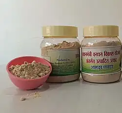 Nandurbar Amchur commonly known as mango powder, is a popular Indian fruity spice powder made from dried, unripe local green mangoes (Gaauti Aam) grown in the Nandurbar district of the Indian state of Maharashtra.[1] Nandurbar Amchur is a centuries-old specialty of Nandurbar.[2]