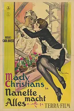 Nanette Makes Everything (German: Nanette macht alles) is a 1926 German silent film directed by Carl Boese and starring Mady Christians, Georg Alexander and Vivian Gibson.[1] It was shot at the Terra Studios in Berlin. The film's sets were designed by the art director Oscar Werndorff.