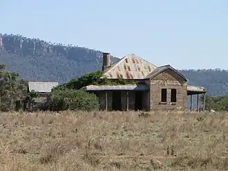 An abandoned homestead at Murga in front of the cliffs of Nangar National Park, as seen from the Escort Way | |