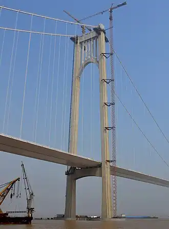 The Nanjing Qixiashan Yangtze River Bridge, formerly Fourth Nanjing Yangtze Bridge, is a suspension bridge over the Yangtze River in Nanjing, China.[2] The bridge is the 11th longest span in the world and the sixth largest in China.[3][4] The bridge has renamed on 20 December 2019.[5]