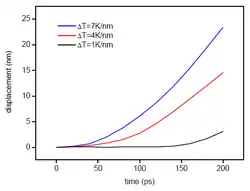 The temperatures and the thermal gradient that the MWNT are subjected to are very high. On one hand, the high thermal gradient seems to have a highly detrimental effect on the lifetime of such nanoactuators. On the other hand, experiments show that the displacement of the shorter tube is directly proportional to the thermal gradient (see Figure 2.5). Therefore, a compromise needs to be reached to optimize the thermal gradient. The dimensions of movable nanotube is directly related to the energy barrier height. Although the current model excites multiple phonon modes, selective phonon mode excitation would enable lowering the phonon bath temperature.[11]