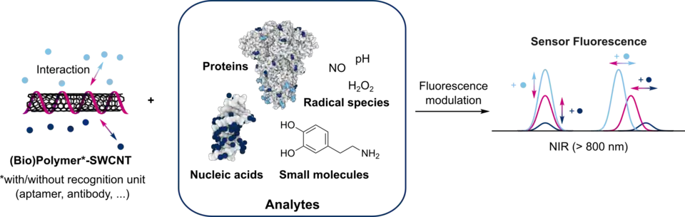 - ^ Metternich JT, Wartmann JA, Sistemich L, Nißler R, Herbertz S, Kruss S (12 July 2023). "Near-Infrared Fluorescent Biosensors Based on Covalent DNA Anchors". Journal of the American Chemical Society. 145 (27): 14776–14783. Bibcode:2023JAChS.14514776M. doi:10.1021/jacs.3c03336. ISSN 0002-7863. PMID 37367958. S2CID 259261621.