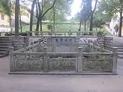 In 1140, in ruling of Emperor Gaozong of Song dynasty (960–1279), when Chan master Pu'an Yinsu passed by, he set up a Buddhist temple named "Shuanglin Chan Temple" (双林禅寺). Because the well is in the south of the temple, it was named "Nanquan Temple" (Nan means south and Quan means well).[2]