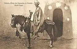 The highest level in the traditional hierarchy, referred to in English as the 'Paramount Chief' or sometimes 'King', is the last court of appeal for all disputes at lower levels: between paramounts there was no recourse other than war. The subjects of a Paramount Chief constitute an ethnic group or 'tribe'. In this system the Bimbilla Naa with his seat at Bimbilla is the Paramount Chief of the Nanumba ethnic group.[8] The area occupied by the Nanumba is known as Nanung. It was founded by Gmantambo, a son of Naa Gbewaa. The leopard is the emblem of the area, and the seat of the Bimbilla Naa is called the Gmantambo Palace. The Nanumba have a particularly close relationship with the Dagomba, but the larger group have rarely exercised direct power over them.[9]