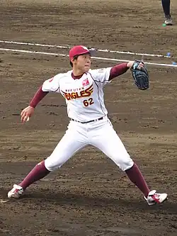 ![]() Nishiguchi with the Tohoku Rakuten Golden Eagles | |