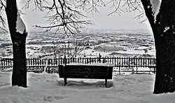 Naousa has a humid subtropical climate (Cfa) in the Köppen climate classification but due to its inland location and elevation, is more continental (and less Mediterranean) than in most Greek cities. It is heavily influenced by the mountains, rising up to the west, and the plain of Giannitsa to the east. On one hand, the mountains shelter the area from cold winds blowing from the north and west down the Balkan Peninsula and also from hot southwest winds, creating a non-extreme microclimate. On the other, they create föhn winds, which draw in cool, damp air from the Aegean coast. The annual precipitation of Naousa is typically lower than in western Greece, but it is one of the highest in the Macedonia region, measuring around 710 mm per year. Winters can be cold. In the city, snowfall is not uncommon (snow falls at an average of 10–15 days per year) and measurable amounts of snow can remain on the ground for several days. Typically, downtown Naousa experiences milder winter temperatures than the suburbs where temperatures can drop many degrees below zero. Recent years have been a lot warmer and the 2007 European heat wave saw Naousa reaching 40 °C for the first time in recent memory, with an absolute maximum of 41.3 °C on 25 July. On 8 January 2017, temperature dropped to -10.5 °C, which is a 10-year low.[31]