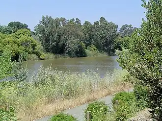The river also supports a remarkable diversity of fishes and recovering salmonid populations, especially chinook salmon (Oncorhynchus tshawytscha) and steelhead trout (Oncorhynchus mykiss). In 2003 the Napa County Resource Conservation District began an ongoing salmon monitoring program, and have recorded a run of approximately 400 - 1000 fall-run Chinook salmon the past several years.[7] The Chinook run begins in late October through January. Conclusive evidence of historical chinook salmon populations in the Napa River basin have not been established, but the river provides appropriate habitat for salmon and its location near the entrance to the Sacramento/San Joaquin Rivers make it likely that salmon would have at least ventured into the Napa River.[6][8] In 2013, a genetics study of Napa River chinook salmon revealed that two adults migrated from the Klamath River and successfully spawned in the Napa River, since four juvenile chinook collected from the Napa River in 2010 were proved to be siblings from the close similarity of their DNA and that the latter was characteristic of Klamath River chinook.[9] These findings have important implications for the protection of the federally endangered Coastal California Chinook Salmon ESU since the Napa River, nor any stream in the Bay Area, was included in this ESU.