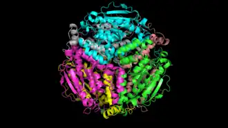 ![]() 1,4-Dihydroxy-2-naphthoyl-CoA synthase hexamer, Mycobacterium tuberculosis | |||||||||