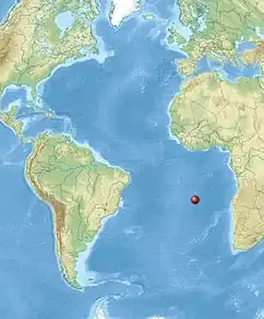 Saint Helena is a volcanic island situated 1,900 km (1,000 nmi) west of the African mainland in the South Atlantic Ocean. With a population of approximately 5,000 to 6,000,[note 3] the island has only three access points to the sea. Its isolation and the steep black cliffs, which range from 200 to 300 meters in height, made it an easily monitorable and defensible location.[4] The island was under the possession of the British East India Company rather than the British state, which had to lease it for this purpose.[note 4]