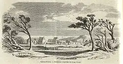 On October 15, 1815, the Northumberland was anchored off Saint Helena.[6] On the following day, Napoleon disembarked.[2] Those in attendance included the Grand Marshal of the Palace, Henri Gratien Bertrand, and his wife Fanny; General Gourgaud; Emmanuel de Las Cases; General de Montholon and his wife Albine; Louis-Étienne Saint-Denis, also known as the Mameluke Ali; his maître d'hôtel Jean Baptiste Cipriani; his valet Marchand; and his usher Jean-Noël Santini. On October 17, Napoleon took temporary residence at The Briars Pavilion, hosted by the Balcombe family, while awaiting the preparation of his permanent detention site at Longwood, which would take seven weeks.[7] Longwood, situated on a plateau, allowed for easier surveillance but was constantly exposed to trade winds, often shrouded in fog and humidity, with sudden alternations between heavy rain and scorching sun. On December 10, 1815, Napoleon finally settled into his final residence under the supervision of the provisional governor, Admiral Cockburn.[8]