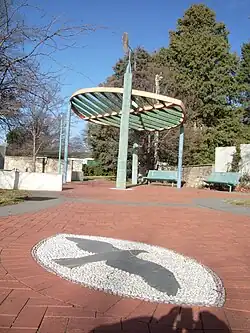 A sculpture titled Narrabundah: A Site Marker has been erected opposite the shops with the following inscription on a plaque:
