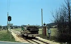 Sugar beet was often transported on narrow-gauge railways, from the field to the factory.[62][63] In order to shorten the route, some of the sugar factories had built juice station where beets were pressed and the sap was taken to the factories in pipelines. The sugar factories in Stege and Nakskov had five juice stations, Assens Sugar Factory had four, and Maribo Sugar Factory had one. The first Danish sugar beet factory was Højbygaard Sugar Factory in Holeby on Lolland, which was founded in 1872. The factory's last beet harvest was in 1960, after which the buildings were converted into a paper factory. In 2007, the old sugar factory was named one of Denmark's 25 industrial monuments by the Cultural Heritage Agency.[64]