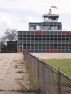 The terminal building, including a defunct control tower, sits on the southeast corner of the airport. It is locked and has nothing to offer to visiting aircraft.[6][7]