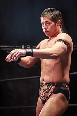 Naruki Doi (土井 成樹, Doi Naruki; born October 4, 1980)[1] is a Japanese professional wrestler currently performing for Dragon Gate, DDT Pro-Wrestling and All Japan Pro-Wrestling as a freelancer. He also wrestled for Ring of Honor (ROH) and Total Nonstop Action Wrestling (TNA); in the former promotion, he was a one-time World Tag Team Champion with Shingo Takagi.
