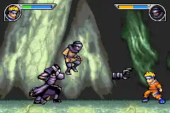 Naruto: Ninja Council 2 is side-scroller game in which the player has to advance through a 2D level while fighting enemy ninja.[1] The levels vary from the original anime locals like Akagahara and the third exam stadium to some new settings like a cave system.[2] The player is able to double-jump and teleport up and sideways to get to places that are normally out of reach.[1] The game also features special levels in which the character's speed doubles and is asked to run through the whole level while collecting leaf symbols in a specific time.[3] The playable characters are Naruto Uzumaki, Sasuke Uchiha and Sakura Haruno, and it is also possible to unlock Rock Lee.[4] The player is able to swap between characters using the left trigger, and each one has a separate life bar,[3] however when a health package is picked up by one character, it affects the whole party. In certain points of the game however, the player is not able to switch between one or two of the characters, which results in a higher difficulty level.[3]