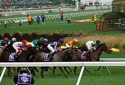 On May 28, 2008, Nashoba's Key was euthanized after breaking her left hock in her stall at Hollywood Park.[1] The 5-year-old was expected to be one of the favorites for that fall's Breeders' Cup at Santa Anita. She was known for her feisty demeanor, and she apparently kicked the stall, shattering her left tibia. Visitors were often warned against getting too close to Nashoba's Key to avoid angering her. Trainer Carla Gaines issued a short statement: "In a freak accident at 5:30 a.m. this morning at Hollywood Park, Nashoba’s Key kicked the wall of her pen and broke her hind leg. She was euthanized shortly thereafter. She brought a lot of joy to everyone’s lives that were lucky enough to be associated with her and we will all miss her very much."