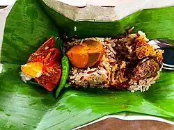 Nasi dagang (Jawi: ناسي داڬڠ, lit. 'trader's rice'; Malay pronunciation: [ˌnasi ˈdaɡaŋ]) is a Malaysian dish consisting of rice steamed in coconut milk, fish curry and extra ingredients such as pickled cucumber and carrots.[2]