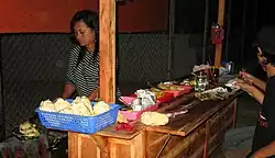 Nasi kucing is often sold at a low price (sometimes as low as Rp 1,000 for nasi kucing[5] and Rp 4,000 for sega macan[4]) at small, road-side food stalls called angkringan, which are frequented by working-class people, or wong cilik, including pedicab and taxi drivers, students, and street musicians.[6] This has led to angkringan being considered the "lowest class of eatery".[5]