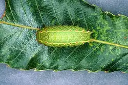 The larvae feed on various smooth-leaved woody plants, including beech, hickory and hornbeam. They are adorned with stinging spines.[5]