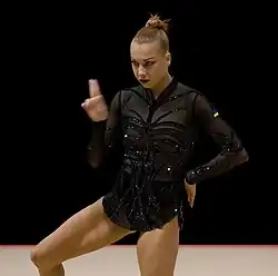 Natalia Oleksandrivna Godunko (Ukrainian: Наталія Олександрівна Годунко; Russian: Наталья Александровна Годунко, born 5 December 1984) is a Ukrainian former rhythmic gymnast. She is the 2001 team all-around world champion, 2005 European ribbon champion and the 2004 Grand Prix Final all-around champion.