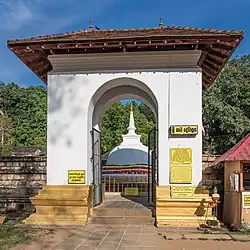 The Nàtha Devàla is a shrine located on the terrace, in front of the Royal Palace complex in Kandy. It is said to have been in existence even before the Tooth Relic was brought to Kandy. The oldest extant structure in Kandy, it is said to have been built by King Vikramabahu III in the 14th century.[1] The history of the worship of God Natha is not clear. The name 'Natha' literally means ‘no form’ and ‘no shape’, and is therefore generally associated with Maitreya, the next Buddha.[2]