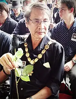 Members of the Philippine art community–including a number of living members of the Order–protested that the proclamation politicised the title of National Artist, and made it "a way for President Gloria Macapagal-Arroyo to accommodate her allies." Specific protests were raised regarding the nomination of Guidote-Alvarez, who was also executive director of the National Commission for Culture and the Arts, because it was purportedly a breach of protocol and delicadeza (propriety), and of Caparas, on the grounds that he was unqualified for nomination under both the Visual Arts and the Film categories.[12][13] On July 16, 2013, the controversy finally ended after the Supreme Court of the Philippines voted 12-1-2 that voided the four proclamations.[14]