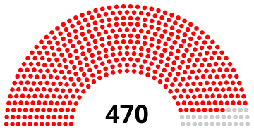 The National Assembly of People's Power (Spanish: Asamblea Nacional del Poder Popular) is the supreme state organ of power of the Republic of Cuba. It is the only branch of government in the state, and per the principle of unified power, all state organs are subservient to it. It is currently composed of 470 representatives who are elected from multi-member electoral districts for a term of five years called consejos populares. The current president of the Assembly is Esteban Lazo Hernández. The Assembly only meets twice a year, with the 31-member Council of State exercising legislative power throughout the rest of the year.[2] The most recent elections were held on 26 March 2023. The number of deputies was reduced from 605 to 470 for the 2023 election.[3]