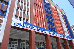 National Bank of Commerce (Tanzania), whose full name is National Bank of Commerce (Tanzania) Limited, sometimes referred to as NBC (Tanzania), or as NBC (Tanzania) Limited, is a commercial bank in Tanzania. It is one of the commercial banks licensed by the Bank of Tanzania, the country's central bank and the national banking regulator.[1] In August 2019, the bank was fined TSh 1 billion (US$435,000) because of the failure to establish a data center in the East African nation.[5]