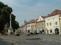 The route of the Blue Trail begins on the top of the Írott-kő Mountain (884 m) at the feet of the lookout tower on the Austrian-Hungarian border and leads among the mountains of the Kőszegi-hegység (Kőszeg Mountains) until the town of Kőszeg. It passes by the Hétvezér-forrás (Spring of the Seven Leaders), the lookout tower of Óház-tető and the Calvary Church of Kőszeg. After Kőszeg, the Blue Trail reaches the wide plains of Rába River. The route of the Trail crosses the Little Hungarian Plain in northwest-southeastern direction via Sárvár – where the route crosses the Rába River – until Sümeg. The total climb on the 120 km long plain section is only 460 metres.
