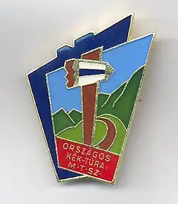 Anyone who completes the Blue Trail is eligible for the Blue Trail Badge of MTSZ. The badge is an irregular quadrangle with a road leading towards mountains with a blue signed post and below in red stripe with the following: "Országos Kék-túra MTSZ". MTSZ prepares and hands over the badge—if it is possible—during a small ceremony. A record of those who have completed the trail is also kept by the Association.