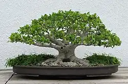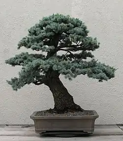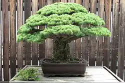 ![]() A western yellow pine (Pinus ponderosa) bonsai on display at the entrance to the National Bonsai and Penjing Museum | |