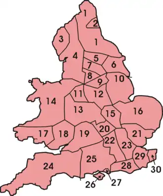 Castle proposed forming regional transport authorities, which would take over the THC subsidiaries and municipal transport undertakings in their area, and would also have the power to acquire private bus operators.[1] However, in November 1967 British Electric Traction (BET) unexpectedly offered to sell its bus operations to the government.[4] BET, who had been the only major private bus operating group, received £35 million for its 25 provincial bus companies and 11,300 vehicles.[5] The deal meant that the state or municipal bus operators now operated some 90% of scheduled bus services in England and Wales.[1] Instead of forming the regional authorities, the government published a white paper proposing the merger of the THC and BET organisations into a single National Bus Company.[6][7]