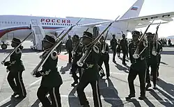 The unit was originally founded on 01 May 1967 as the State Presidents Guard[1] when Charles Robberts Swart was the State President of South Africa. It was dissolved in 1990 ahead of the first democratic elections in 1994. The unit was rebranded in September 1996 as the National Ceremonial Guard. The NCG's old uniform of dark green tunic with black pants was reinstated after it was reestablished. In April 2008, the NCG moved into the Sebokeng Military Complex by order of the president.[2][3]