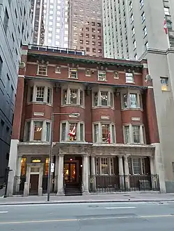 The building is protected under Part IV of the Ontario Heritage Act since March 17, 1976, and also enjoys a heritage easement agreement since July 16, 1984. It was designed by S.G. Curry, of the Sproatt & Rolph architectural firm.[9] The firm of Sproatt & Rolph was responsible for designing a number of other Toronto landmarks, including Hart House (University of Toronto), the Canada Life Building, the Fairmont Royal York Hotel, Bishop Strachan School, Eaton's College Street store, and the Canada Permanent Trust building across the street from the National Club.[10] The National Club is one of the few remaining intact buildings on Bay Street from this period.